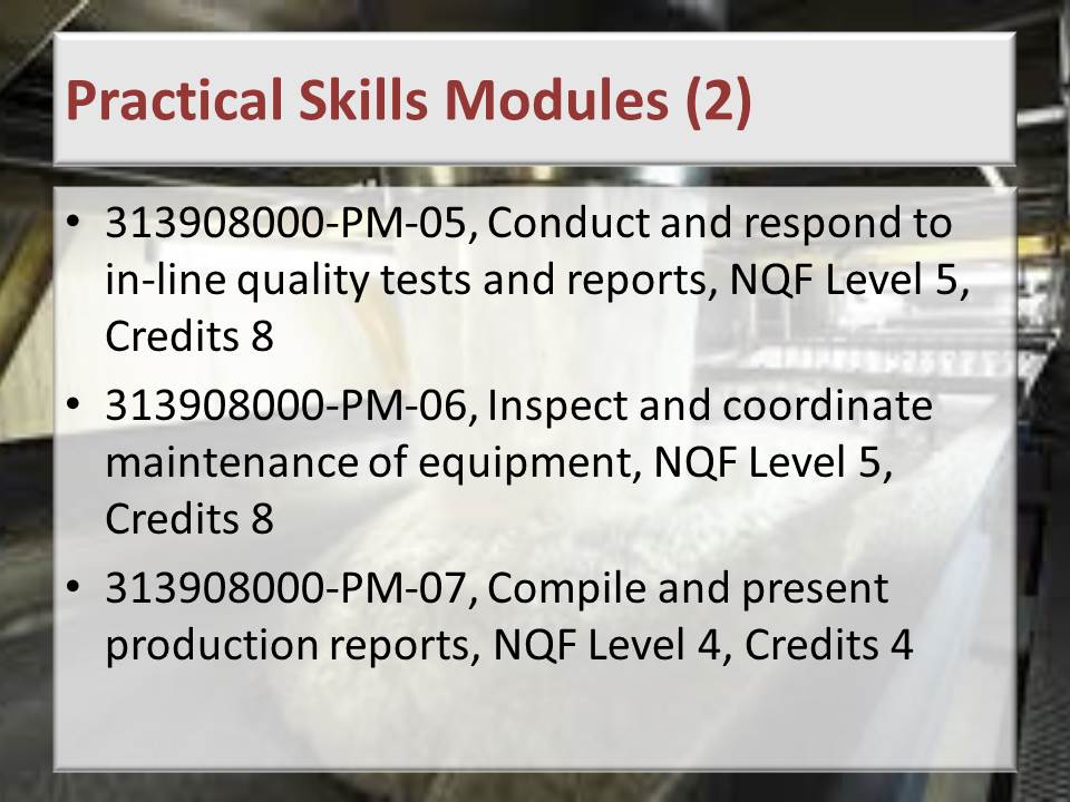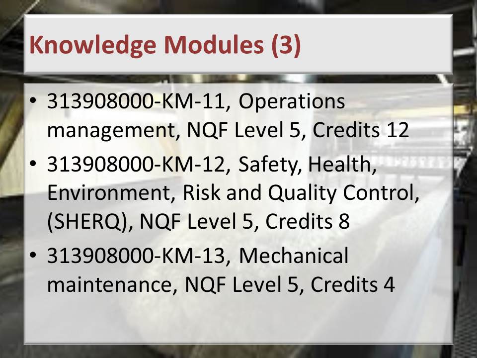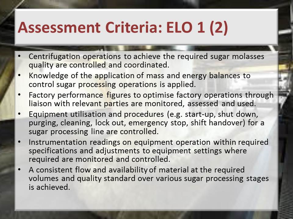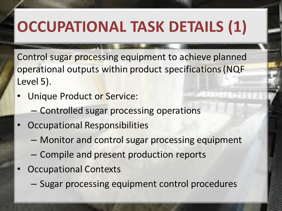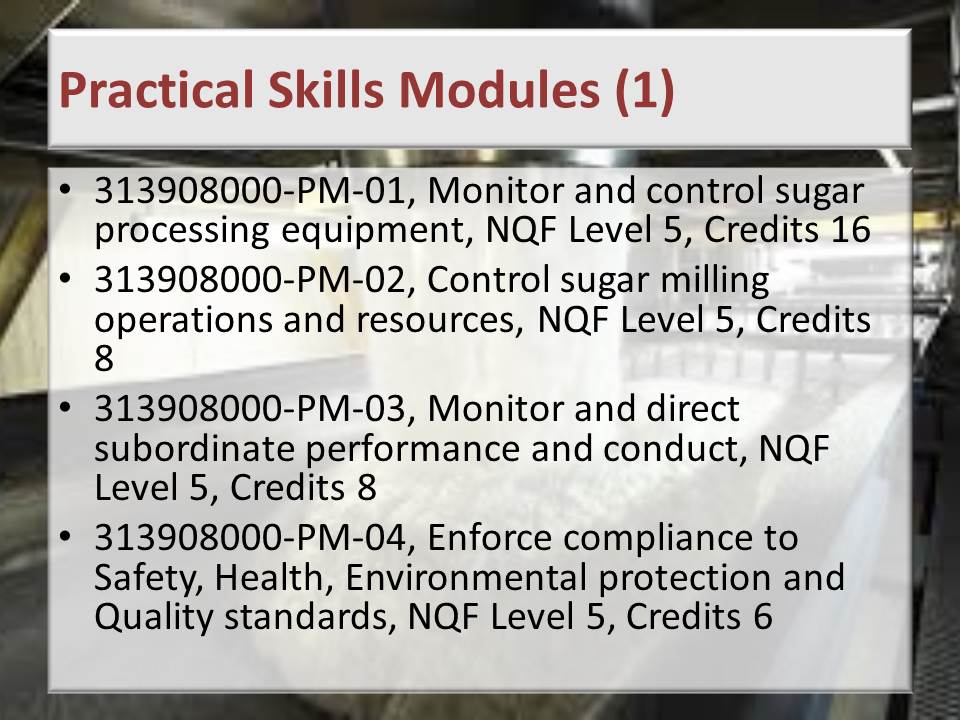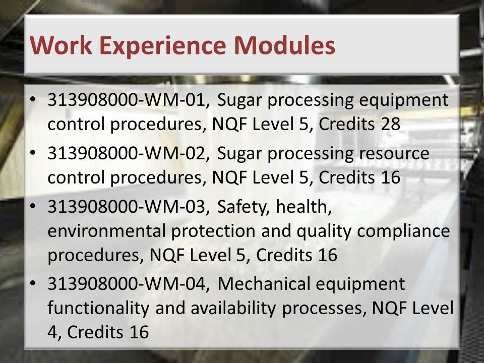 Sugar Processing Controller NQF 5