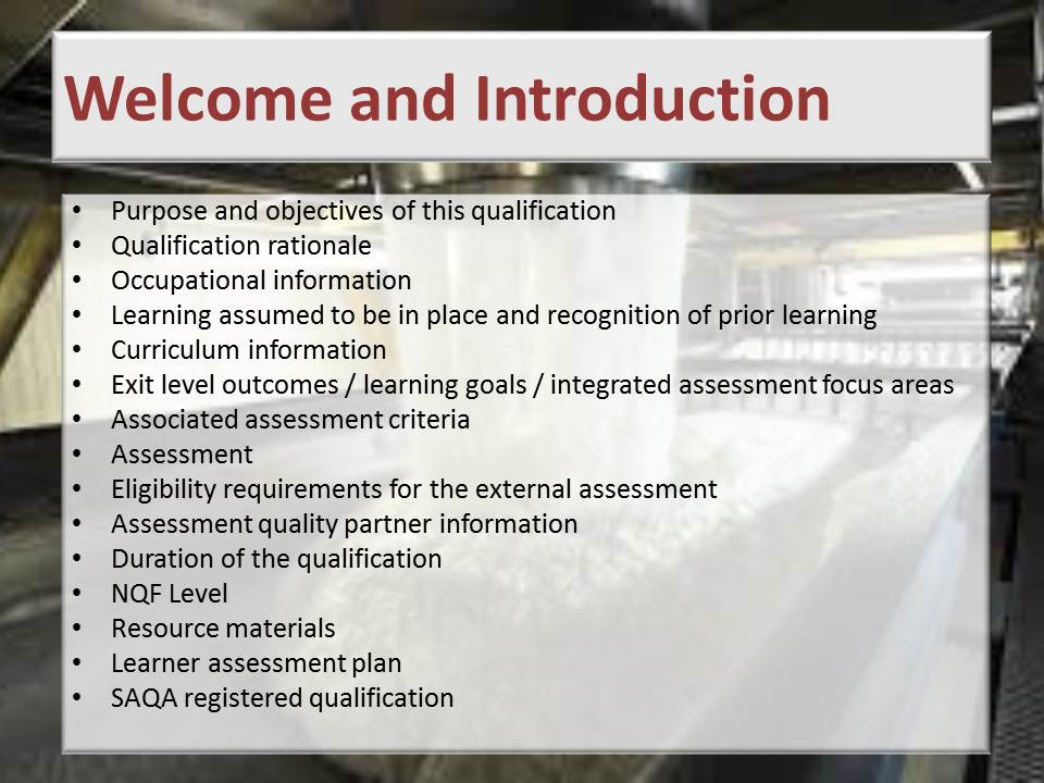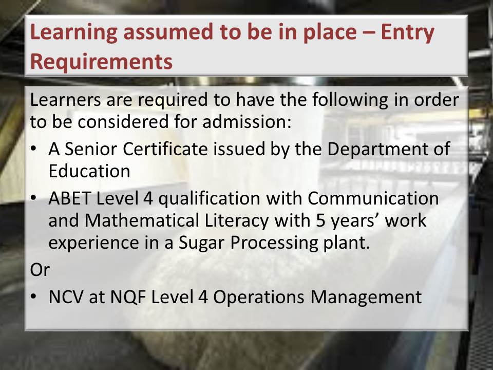 01 Sugar Processing Qualification NQF 5 Facilitation Slides Welcome and Introduction&FolderCTID=0x012000DCED62E2F05F7E4899A8B456BAAEB2E1&View={AFEE9846-CB63-4541-AEE2-0C30399A1B91}